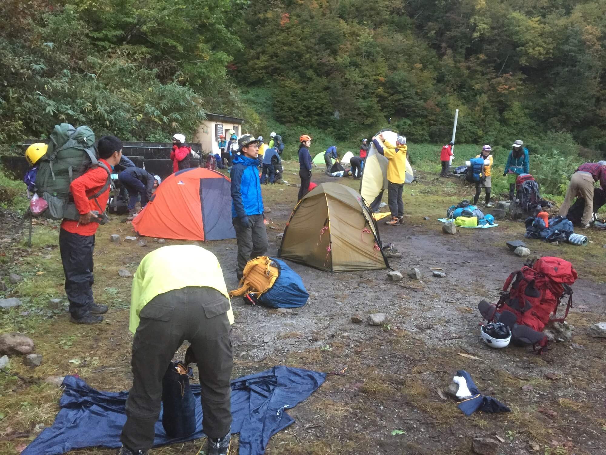 二日目は夜明けを待って朝7時よりスタート。阿曽原温泉小屋は涸沢なみのテントの数でしたが、朝にはきれいに撤収しました。