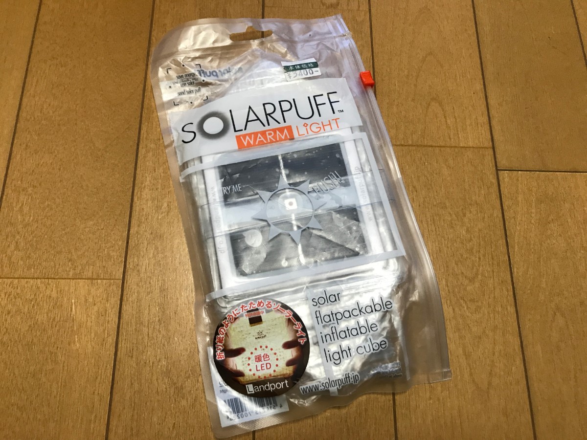 そんななかで株式会社モチヅキから発売されているソーラーパフという太陽光発電で充電するタイプのLEDランタンがとても便利だったのでご紹介したいと思います。