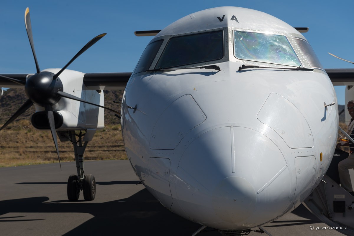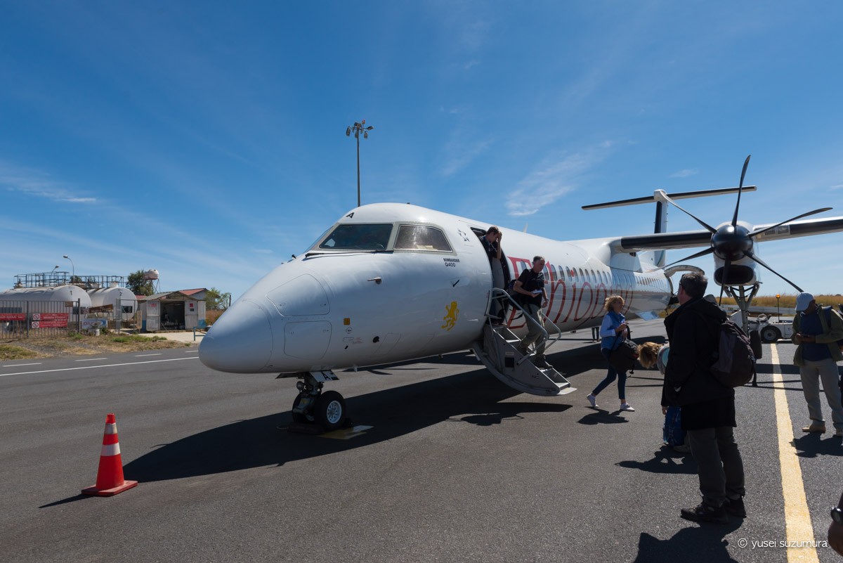 こんな感じで、だだっぴろい滑走路に自分たちが着陸したプロペラ機が1機だけでした。