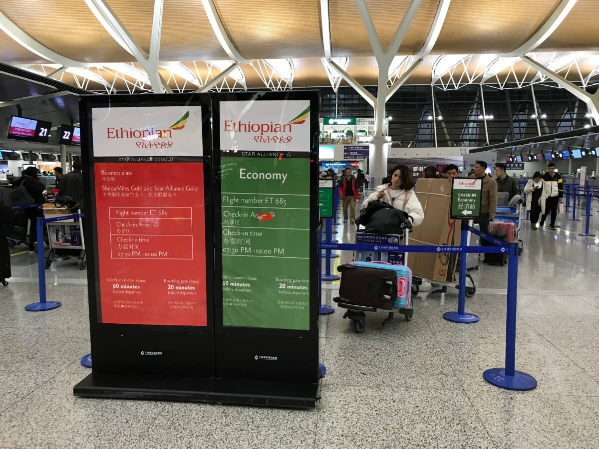 エチオピア航空の国際線は行きは中国の上海からエチオピアのアディスアベバと帰りはアディスアベバからドイツのフランクフルト便で利用しました。