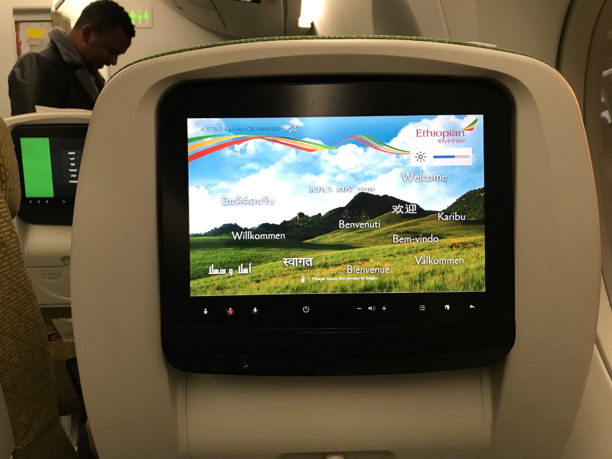 エチオピア航空ということで中華系のLCCではないけど安い航空会社によくあるようなエコノミークラスの座席にディスプレイなしの座席かと思いきやなんとディスプレイついていました。