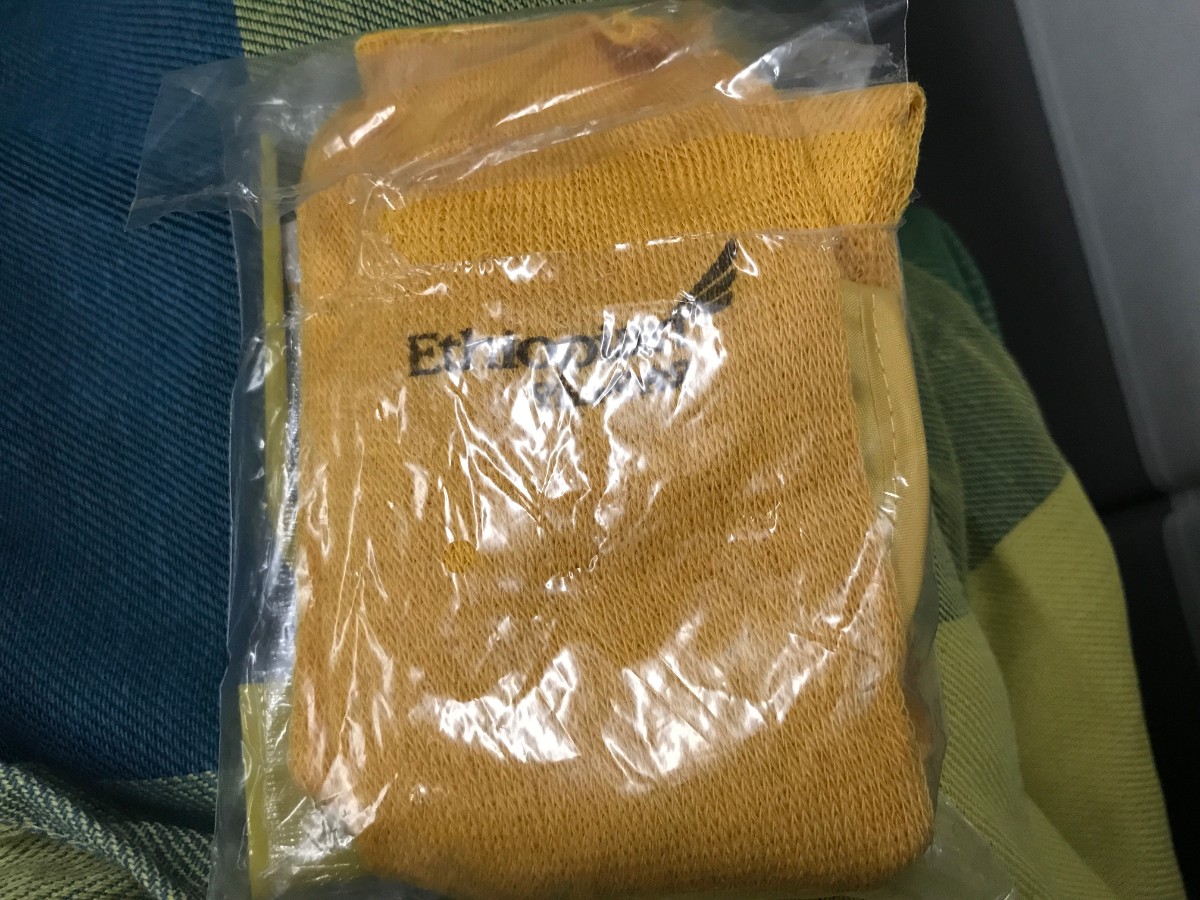 そしてなぜだか、上海からアディスアベバの便では黄色い靴下と歯ブラシのアメニティがエコノミークラスでも配られました。