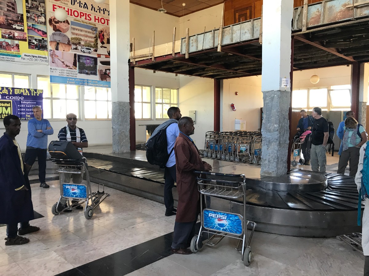 アディスアベバは首都で国際線も発着するので、大きな空港ですが、ラリベラ空港、アクスム空港などは国際線がなく、国内線の利用者も外国人しかいないので、だだっ広い空港にプロペラ機一機で到着というあまり考えられない光景が広がっています。