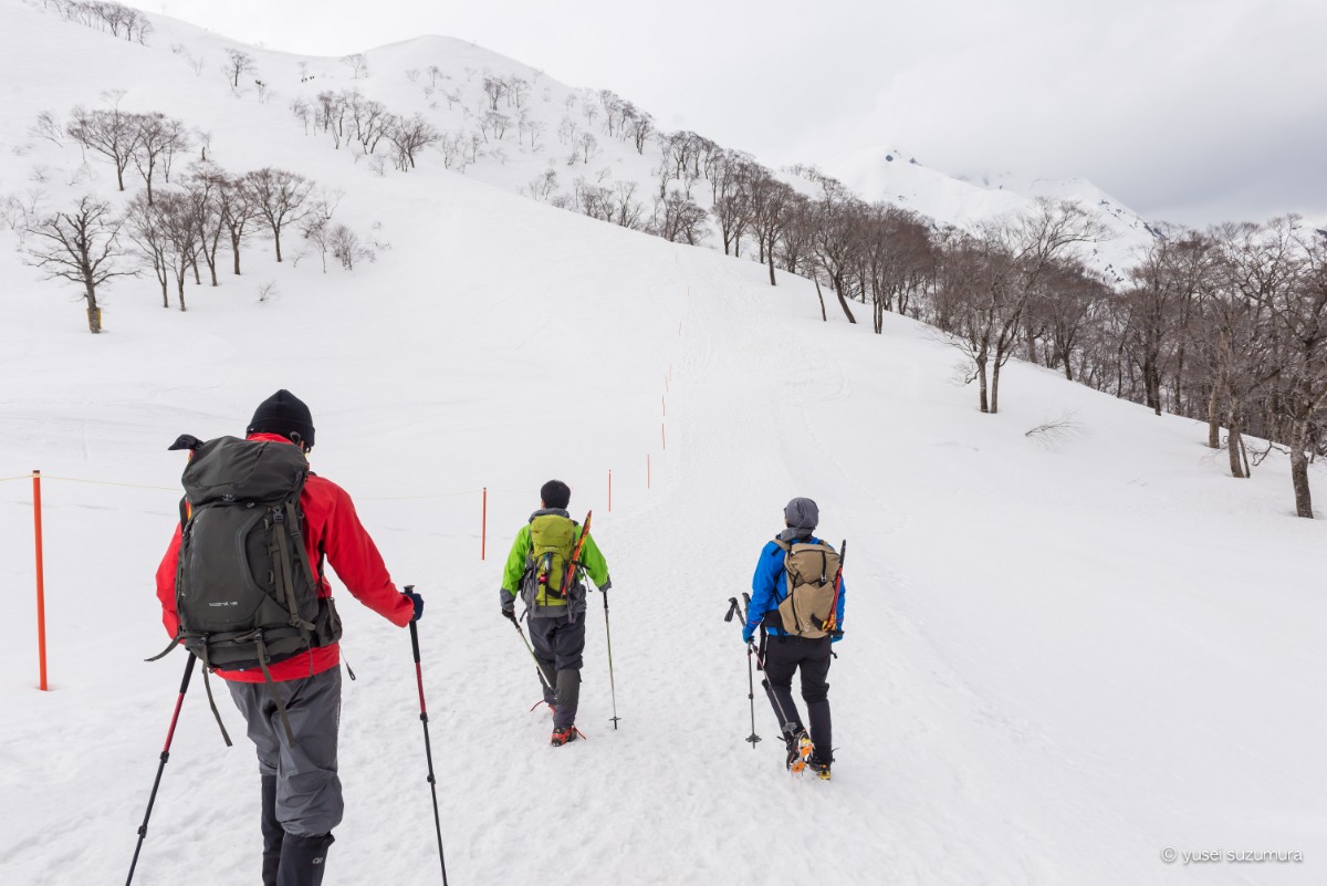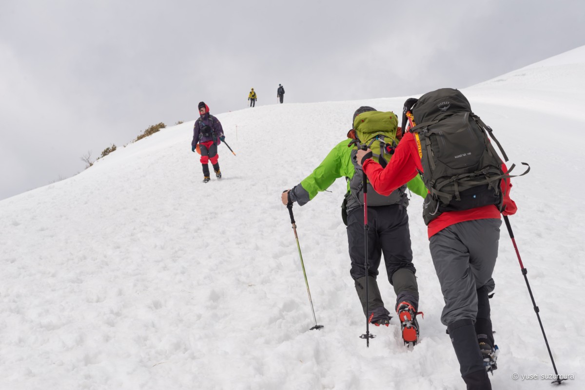 一つ一つの斜面を登るのも一苦労です。特にスキー場から稜線まで登る序盤の急坂はこたえました。