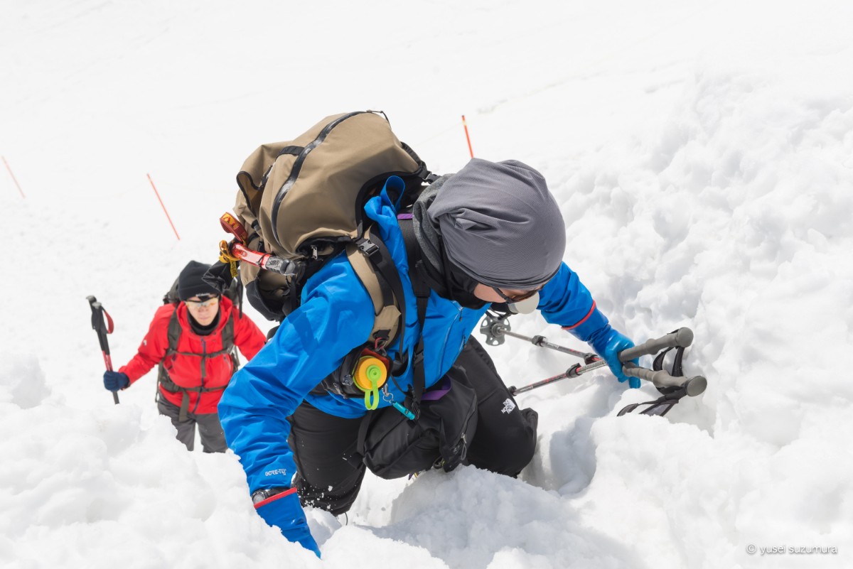 こういった際にピッケルが役に立つとよくわかりました。転倒時の滑落防止やバランスをとるのに非常に役立ちます。