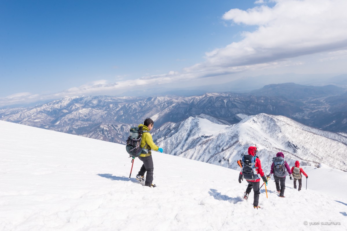 熊穴沢避難小屋を過ぎてもガンガン登っていきます。冬山は積雪のおかげで直登できるので歩行距離的には楽なんでしょうが、そのぶんやはり急勾配が辛くて体力持ってかれますね。