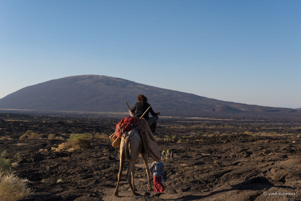 エルタ・アレ火山は標高が600mくらいで大したことはないのですが、それでも3時間くらい登山するのでキツイ人は追加料金払えばラクダに乗って登ることも可能です。お尻痛そうだけども(笑)