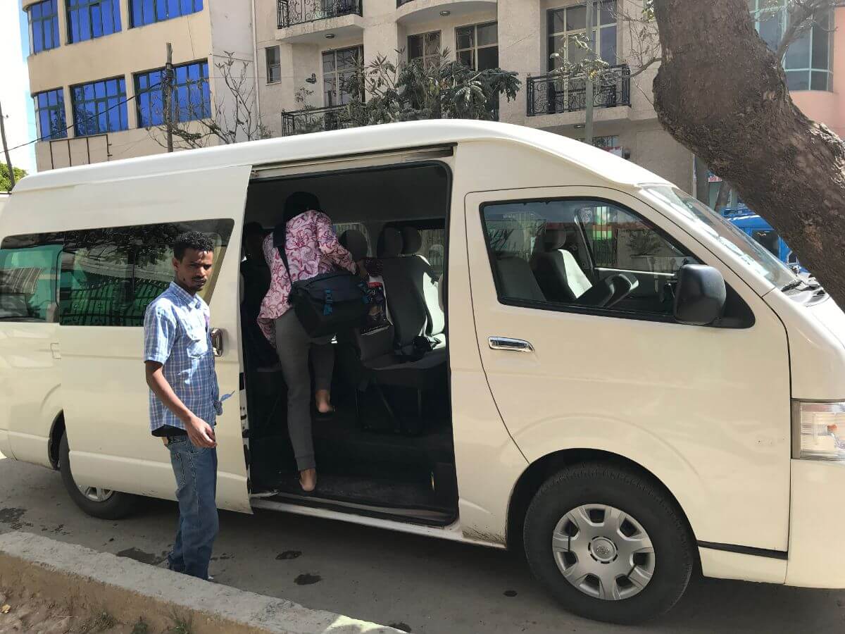 とはいえ、これでダナキル砂漠ツアースタート!ちなみに自分たちのバンはこんな感じでかなりデカイ!ふつうにミニバスですね。