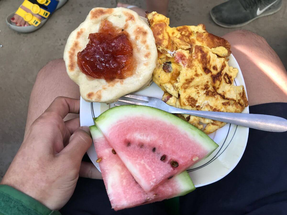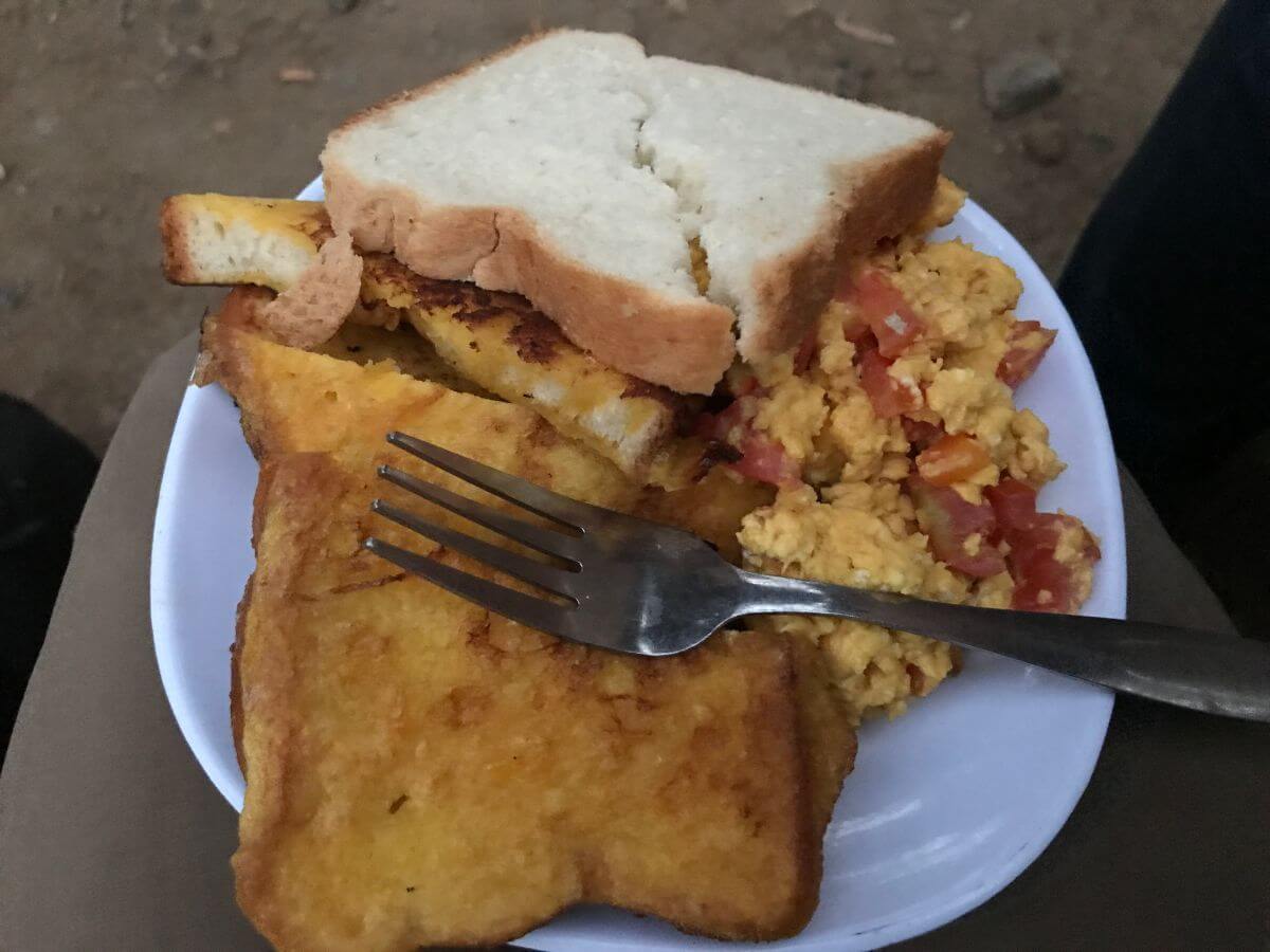 出発前に朝食!朝はスクランブルエッグとフレンチトーストでした。