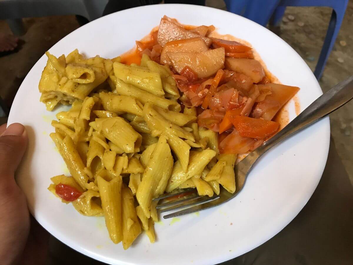 ご飯の炒め物が出てきました。お代わりは自由にできます。ようは配給です(笑)