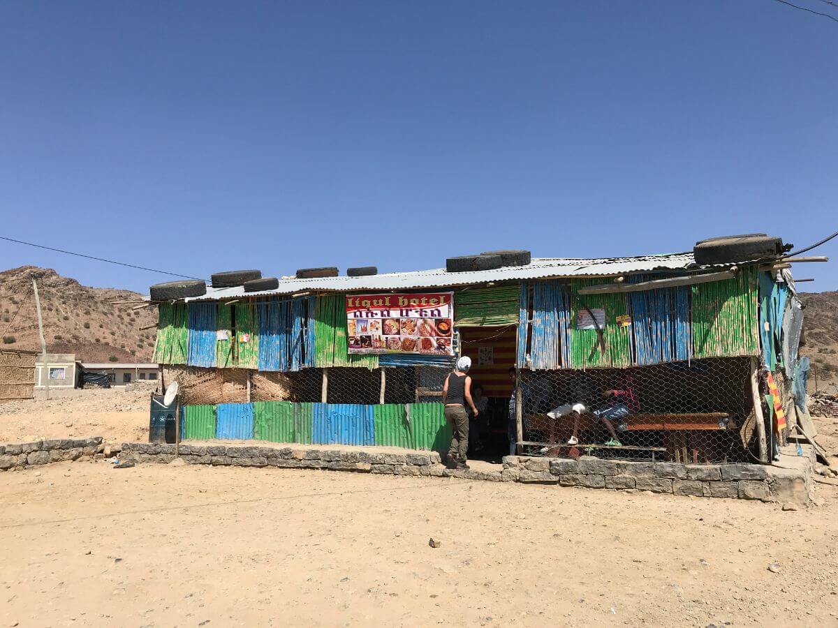 本日は塩湖のあるアサレ湖を目指します。ただ、メケレからは車でかなり遠くにあるので、お昼は途中の村で食事。