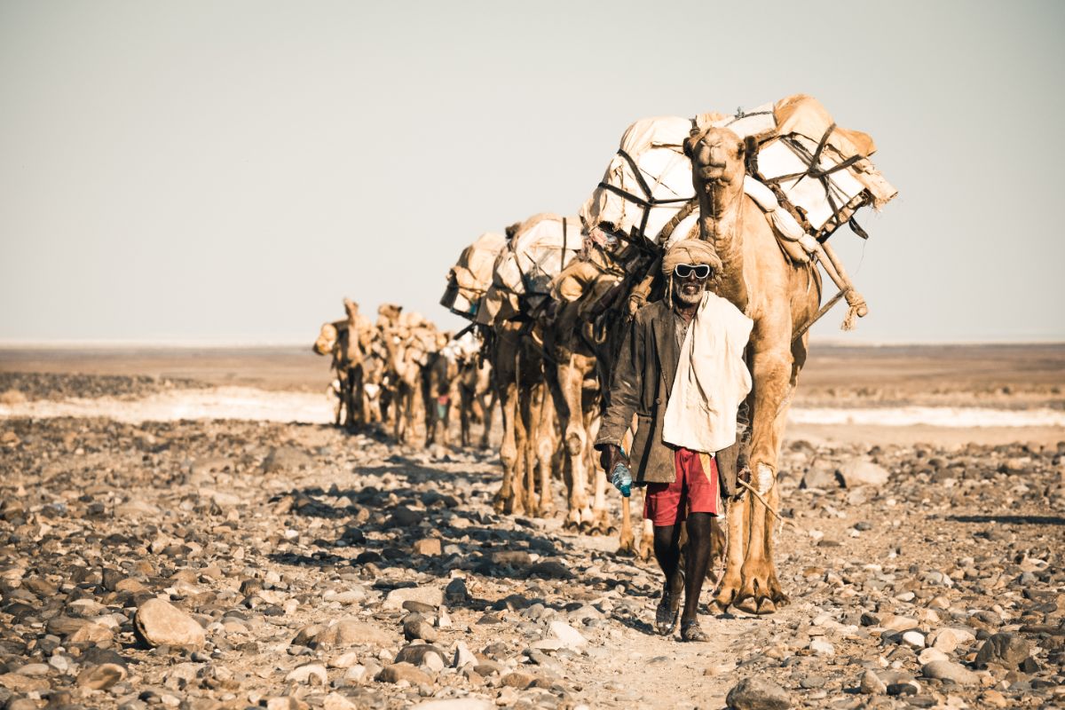 ダナキル砂漠の主産業は岩塩の採掘です。また、夏には気温が50℃近くになることがあり、人類が住める最も暑い場所としてギネス記録に登録されている。